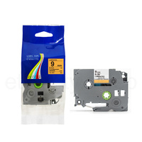 Taśma do Brother TZe-C21 9mm 8m żółta taśma czarny napis fluorescencyjna