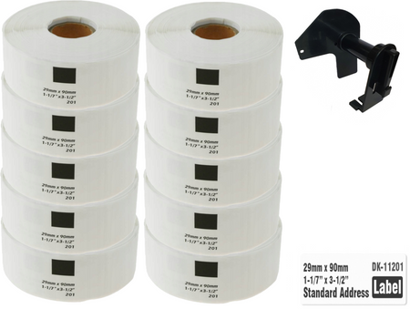 10x Etykiety do Brother DK-11201 czarny nadruk na białym tle, 29mm x 90mm 400szt etykiet na rolce WYMIENNY UCHWYT