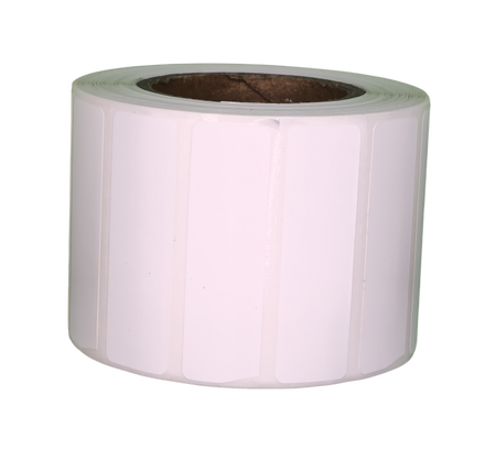 Białe etykiety FOLIOWE termotransferowe na rolce 50x15mm 1000 sztuk, perforowane, do druku przez kalkę