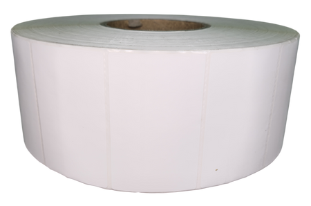 Białe etykiety FOLIOWE termotransferowe na rolce 80x50mm 4000 sztuk, perforowane, do druku przez kalkę