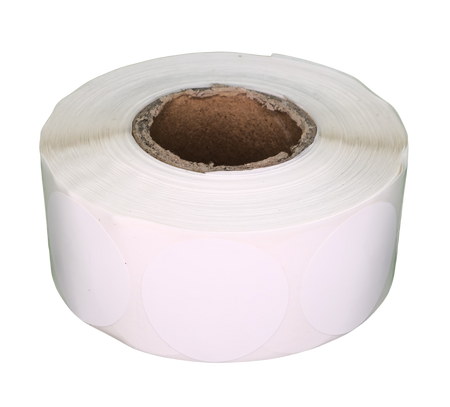 Białe etykiety FOLIOWE termotransferowe na rolce średnica 35mm 1000 sztuk, perforowane, do druku przez kalkę