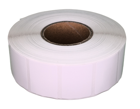 Białe etykiety termotransferowe na rolce 32x25mm 2000 sztuk, perforowane, do druku przez kalkę