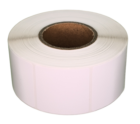 Białe etykiety termotransferowe na rolce 40x40mm 1000 sztuk, perforowane, do druku przez kalkę