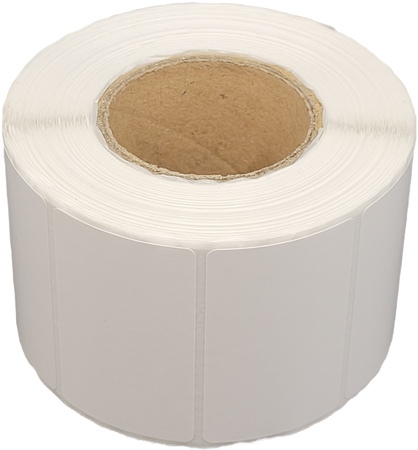 Białe etykiety termotransferowe na rolce 50x30mm 1000 sztuk, perforowane, do druku przez kalkę