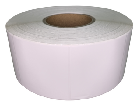 Białe etykiety termotransferowe na rolce 80x80mm 2500 sztuk, perforowane, do druku przez kalkę