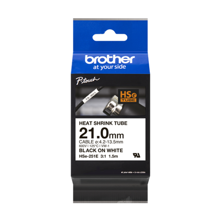 Rurka termokurczliwa Brother HSe-251E 21mm 1.5m ø4.2mm-13.5mm biała rurka czarny nadruk oryginalna