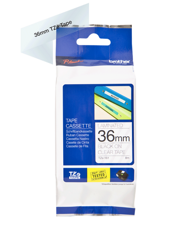 Taśma Brother TZe-161 36mm 8m przeźroczysta taśma czarny napis oryginalna