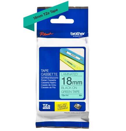 Taśma Brother TZe-741 18mm 8m zielona taśma czarny napis oryginalna