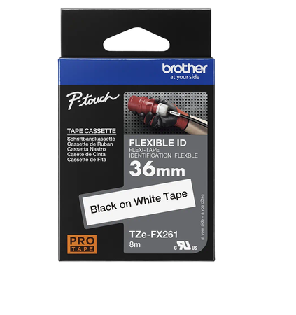 Taśma Brother TZe-FX261 36mm 8m biała taśma czarny napis flexi elastyczna oryginalna