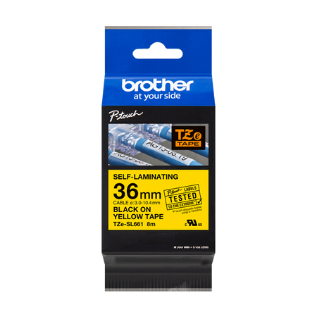 Taśma Brother TZe-SL661 36mm 8m żółta taśma czarny napis samolaminująca oryginalna