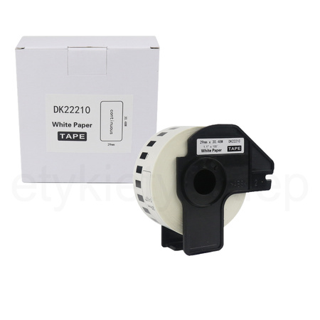 MODEL: DK-22210 biała taśma, czarny nadruk 29 mm x 30,48 metrów na rolce