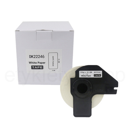 MODEL: DK-22246 biała taśma, czarny nadruk 103 mm x 30,48 metrów na rolce