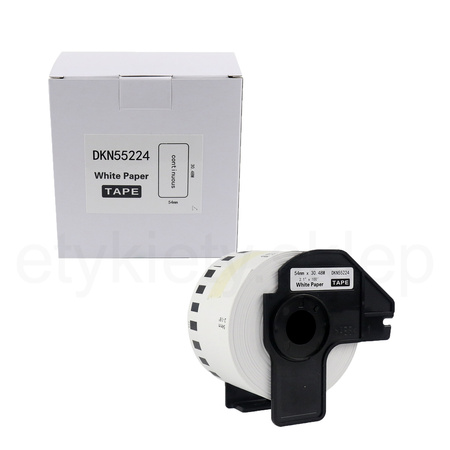 Taśma do Brother DK-N55224 czarny nadruk na białym tle, 54mm x 30,48 metrów na rolce BEZ KLEJU
