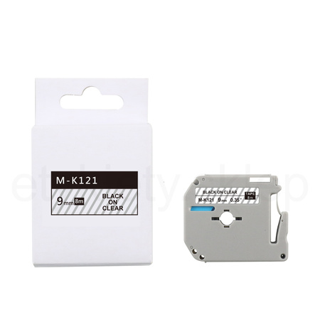 Taśma do Brother M-K121 9mm 8m przeźroczysta taśma, czarny napis