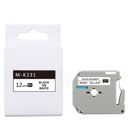 Taśma do Brother M-K231 12mm 8m biała taśma czarny napis
