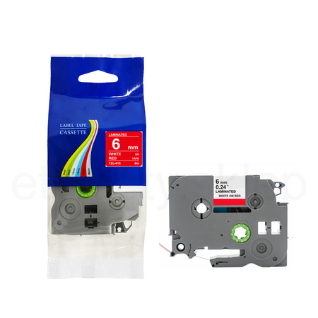 Taśma do Brother TZe-415 6mm 8m czerwona taśma biały napis