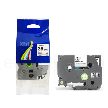 Taśma do Brother TZe-961 36mm 8m srebrna taśma czarny napis