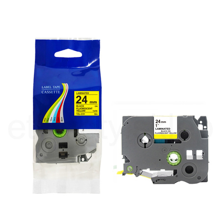 Taśma do Brother TZe-C51 24mm 8m żółta taśma czarny napis fluorescencyjna