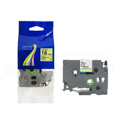 Taśma do Brother TZe-D41 18mm 8m zielona taśma czarny napis fluorescencyjna