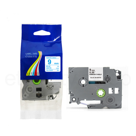 Taśma do Brother TZe-FX223 9mm 8m biała taśma niebieski napis flexi elastyczna