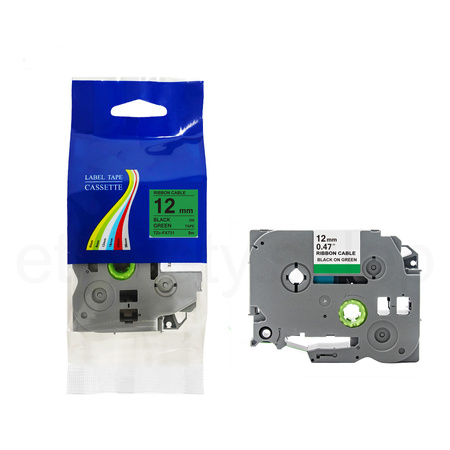 Taśma do Brother TZe-FX731 12mm 8m zielona taśma czarny napis flexi elastyczna