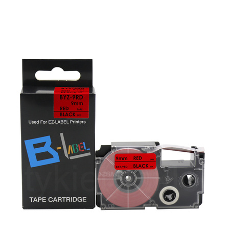 Taśma do Casio XR-9RD 9mm 8m czerwona taśma czarny napis