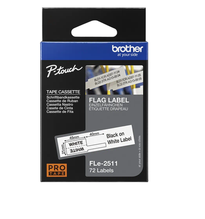 Wymiarowe flagi Brother FLe-2511 45mmx21mm 72 flagi biała taśma czarny nadruk oryginalna